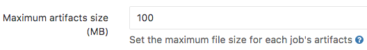 The maximum size of the job artifacts can be set in the Admin area of your GitLab instance. The value is in MB and the default is 100MB. Note that this setting is set for each job.
