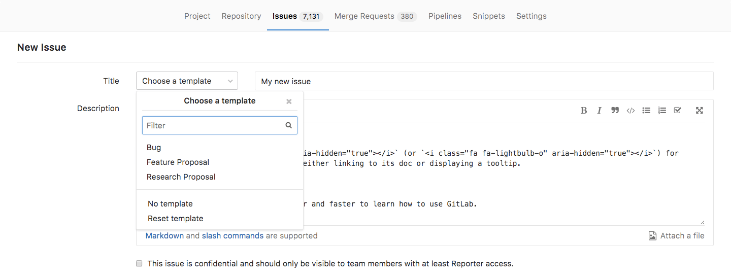 Learn more about them on the issue templates documentation.